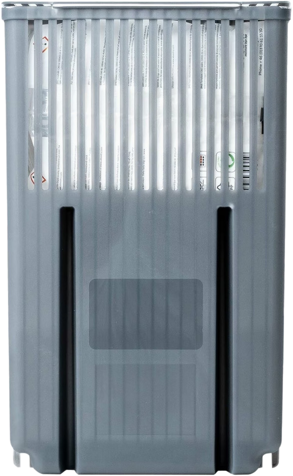 Der Entfeuchter des schwedischen Herstellers Everbrand Sweden verwendet feuchtigkeitsabsorbierende Granulatbeutel, um überschüssige Feuchtigkeit zu entfernen. Das in einem Vliesbeutel enthaltene Calciumchlorid entzieht der Luft Feuchtigkeit, die im Wassertank gesammelt wird und zwar geräuschlos, ohne Strom und ohne Gerüche. Eine Ladung reicht je nach Feuchtigkeitsgehalt der Luft für 1-3 Monate. Die leeren Granulatbeutel können einfach über den Hausmüll entsorgt werden.