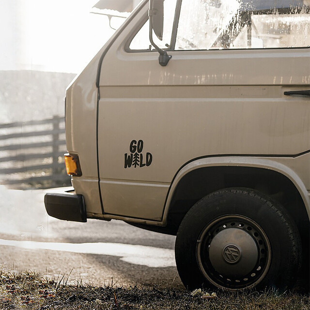 „Go Wild“ Autoaufkleber aus hochwertiger gegossener Folie für jahrelange Haltbarkeit im Außenbereich und auf jedem Fahrzeugtyp. Perfekt für das Auto, den Bus, Camper, das Wohnmobil oder sonstige Oberflächen im Freien. Für alle, die nicht genug von den großen und kleinen Abenteuern bekommen können. Dank der Träger- und Transferfolie bleiben auf dem Fahrzeug nur das Motiv zurück.