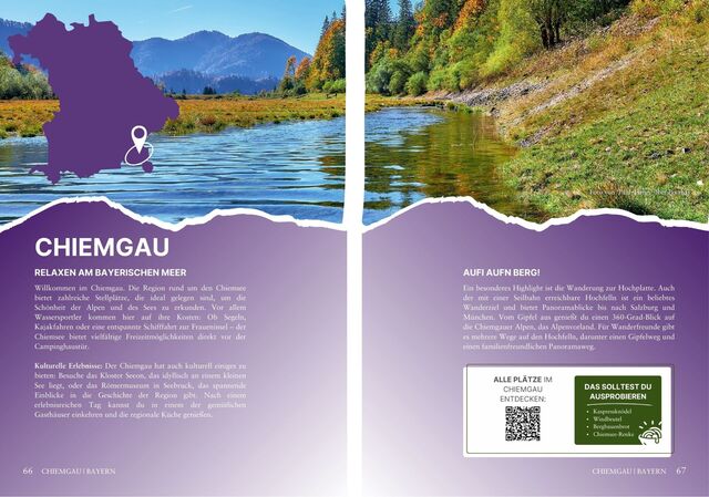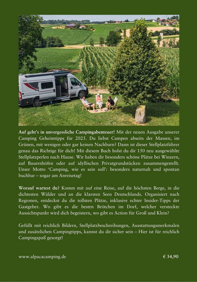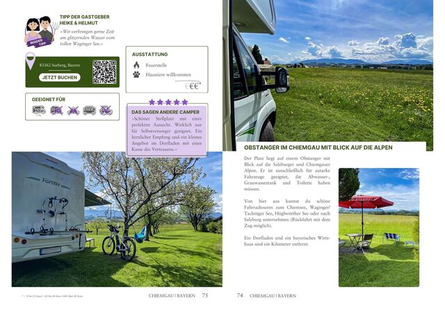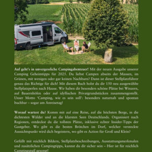 Du liebst Campen abseits der Massen, im Grünen, mit wenigen oder gar keinen Nachbarn? Dann ist dieser Stellplatzführer genau das Richtige für dich! Dich erwarten neu ausgewählte, naturnahe Stellplätze, ganz nach deinem Geschmack. Bei privaten Gastgebern, auf Bauernhöfen und Weingütern. Frei nach dem Motto „Camping, wie es sein soll“ stellen wir dir 150 Stellplätze vor, die du unbedingt einmal besuchen solltest. Dank der vorhandenen QR-Codes zu den jeweiligen Plätzen ist eine Buchung maximal spontan, sogar am Anreisetag möglich.