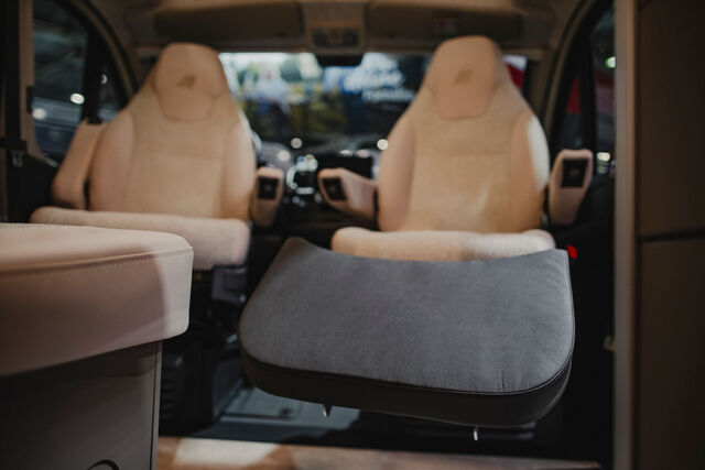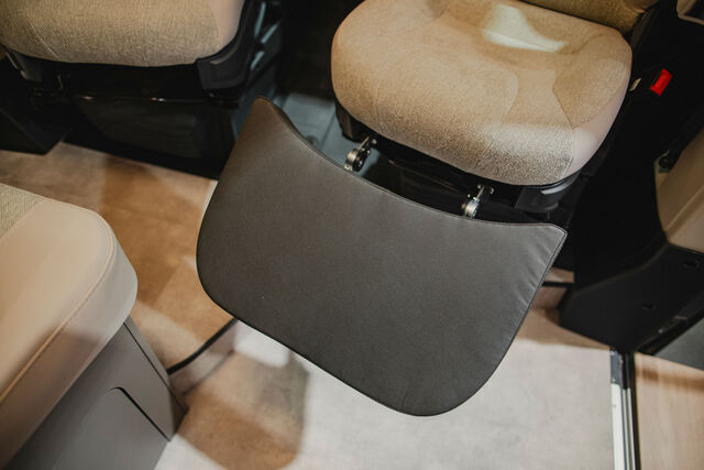 Viele Fahrzeuge haben einen Absatz an der Sitzgruppe. Wenn der Beifahrersitz gedreht wird, baumeln die Beine oft in der Luft, dies gehört dank unserer Beinauflage der Vergangenheit an. Schnelle und einfache Montage: Die Aufnahme der Beinauflage wird einmalig unter dem Sitz montiert und verbleibt dort.