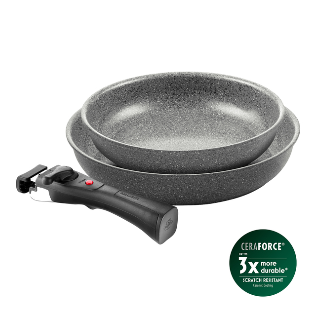 - Set aus 24 cm + 28 cm Bratpfanne und abnehmbarem Griff