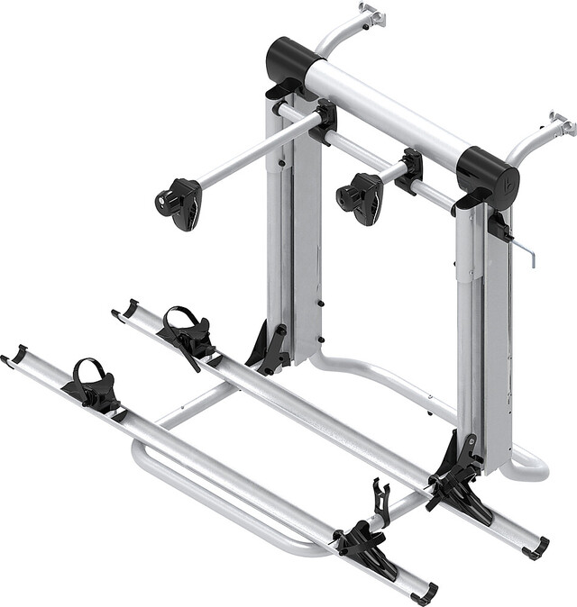 - Die Fahrradhalter können schnell von links nach rechts und von oben nach unten verstellt werden. Außerdem sind sie abschließbar (serienmäßig beim längsten Halter, optional beim anderen Halter)