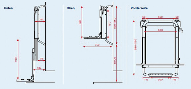- Bei der Montage an den meisten Fahrzeugen kann die Plattform bis zum Boden abgesenkt werden