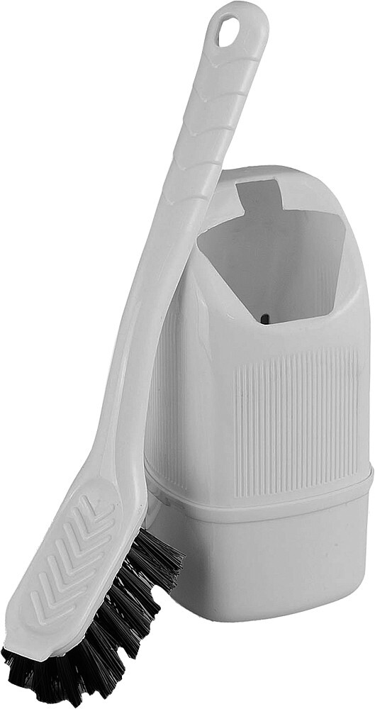 Kompakte Toilettenbürste mit Halter für die Wandmontage, speziell für den Einsatz in Freizeitfahrzeugen entwickelt.