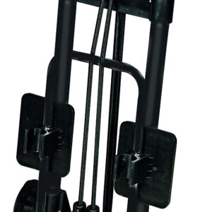 Transportwagen mit teleskopierbarem, einklappbarem Alu-Gestell, robustem KS-Verbindungsteilen und breiten Rädern.