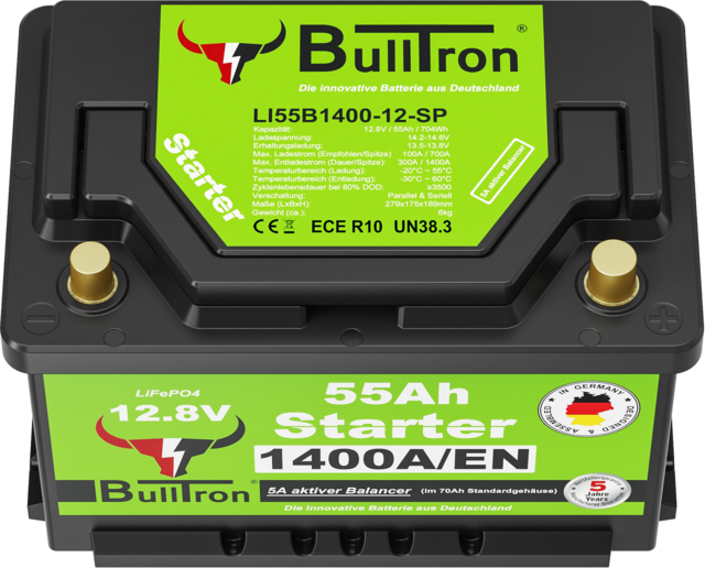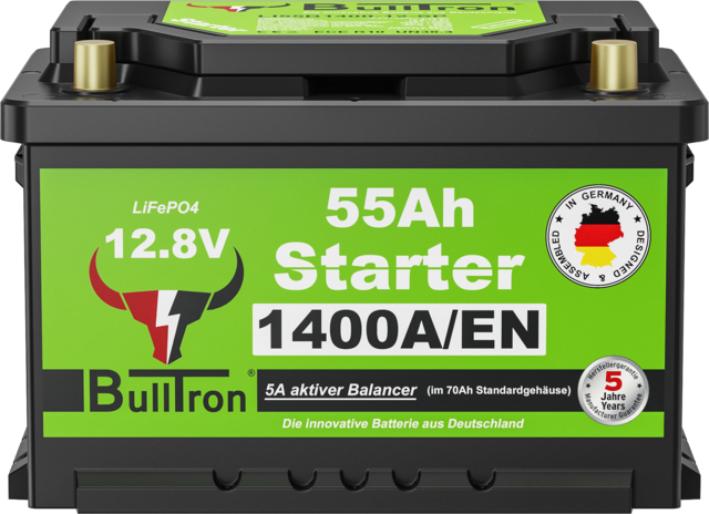 BullTron Starterbatterie 55 Ah mit 1400 A Kaltstartstrom, lang, L5 Gehäuse