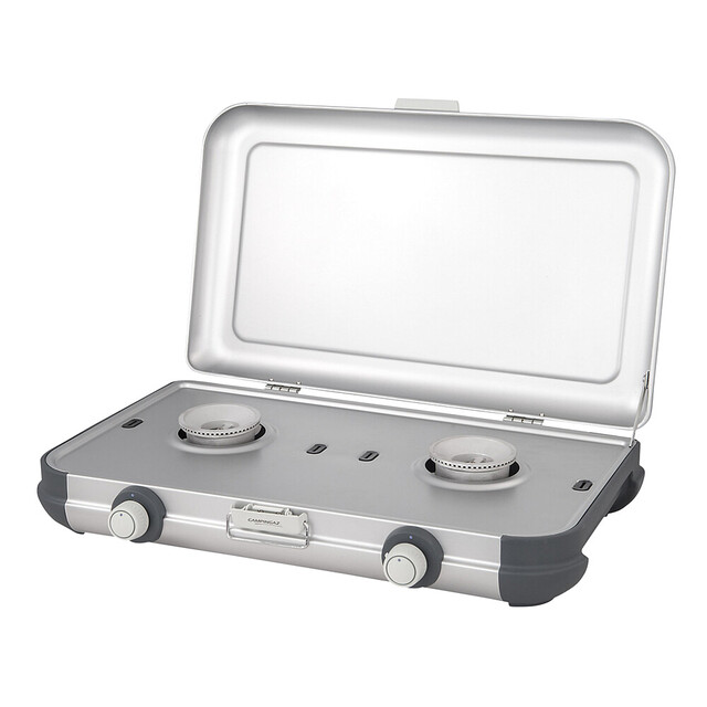 Die Camping Kitchen 2 ist ein kompakter 2-Flamm-Kocher mit Platz für 2 Pfannen (Ø 24 cm). Der perfekte Begleiter für jeden Familienausflug. Der Kocher verfügt über einen robusten Stahldeckel zum Schutz beim Transport und Topfhalter aus emailliertem Stahl, die spülmaschinengeeignet sind. Der zusätzliche Windschutz ermöglicht es auch an stürmischen Tagen leckere Gerichte zuzubereiten. Die hitzeresistenten Seitenteile verfügen über eingebaute Tragegriffe, die den Transport des Kochers erleichtern.