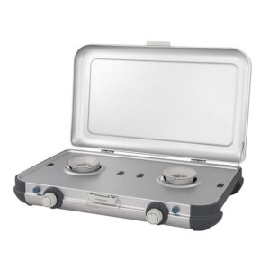Die Camping Kitchen 2 ist ein kompakter 2-Flamm-Kocher mit Platz für 2 Pfannen (Ø 24 cm). Der perfekte Begleiter für jeden Familienausflug. Der Kocher verfügt über einen robusten Stahldeckel zum Schutz beim Transport und Topfhalter aus emailliertem Stahl, die spülmaschinengeeignet sind. Der zusätzliche Windschutz ermöglicht es auch an stürmischen Tagen leckere Gerichte zuzubereiten. Die hitzeresistenten Seitenteile verfügen über eingebaute Tragegriffe, die den Transport des Kochers erleichtern.