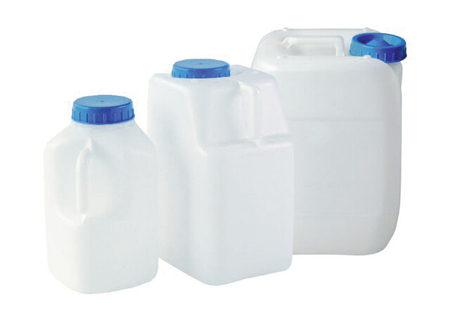 Weithalskanister aus für Trinkwasser zugelassenem Polyethylen und mit Schraubverschluss NW 100.
