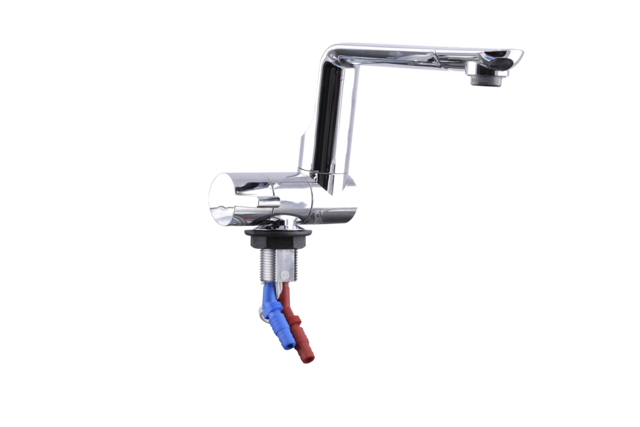 Die hohe Funktionalität unterstreicht der schwenkbare Auslauf, die gut zu reinigende Oberfläche sowie der ausschraub bare Wasserauslass mit standardmäßig mitgeliefertem Reinigungsschlüssel zum Entkalken und Reinigen. Wassermenge und Temperatur sind getrennt einstellbar. Die Armatur ist druckwasserbeständig bis 1,5 bar. Der wahlweise verfügbare Mikroschalter (max. 3 A) ermöglicht den Einsatz in Caravan und Reisemobil.