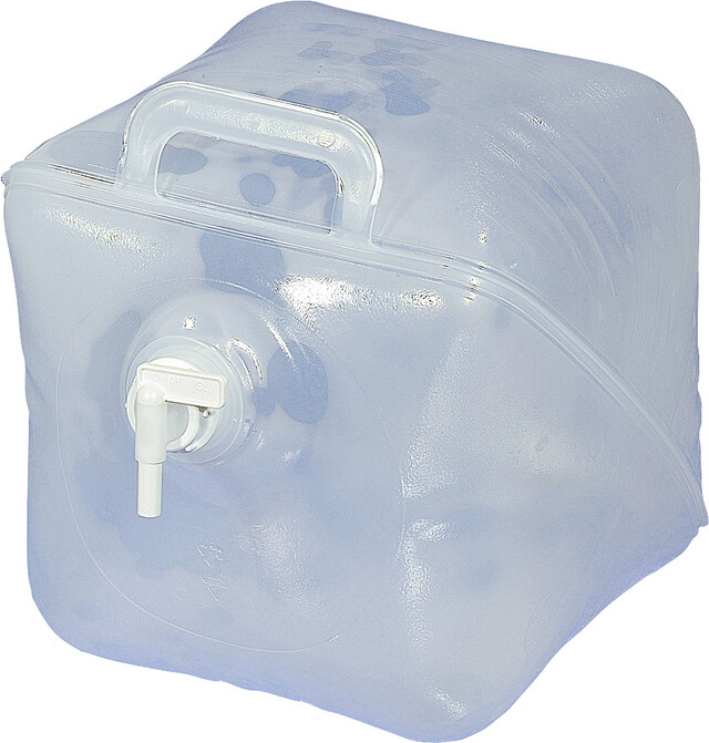 Faltkanister mit Auslaufhahn und Tragegriff aus Polyethylen.