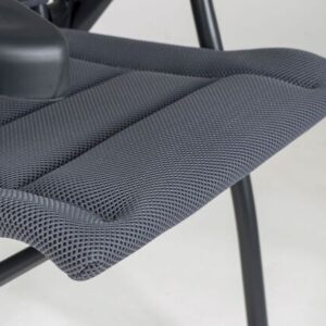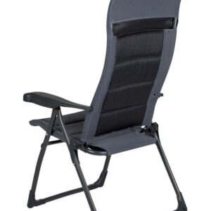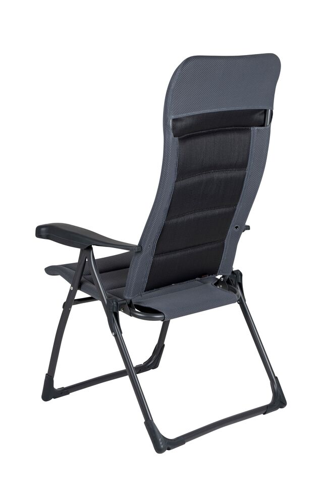 Ein leichter und besonders stabiler Stuhl. Dieser Stuhl bietet dank der in 7 Stufen verstellbaren Rückenlehne und dem gepolsterten 3D-Stoff maximalen Komfort. Die komfortable Polsterung des Stoffs ist besonders luftdurchlässig und hält, aufgrund der offenen Zellstruktur, keine Feuchtigkeit zurück. Dadurch trocknet dieser Stuhl deutlich schneller als Stühle mit herkömmlicher Schaumstoffpolsterung. Zudem sind die Rückenlehne, die Sitzfläche und die Armlehnen ergonomisch geformt. Der Stuhl ist mit einem eloxierten U-Rahmen ausgestattet, der extra Stabilität und Sicherheit gewährleistet. Der Stuhl ist im eingeklappten Zustand sehr kompakt und dadurch einfach zu transportieren.
