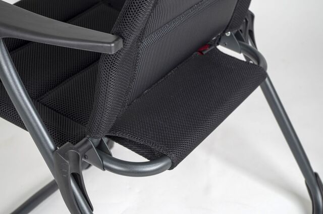 Ein leichter und besonders stabiler Stuhl. Dieser Stuhl bietet dank der in 7 Stufen verstellbaren Rückenlehne und dem gepolsterten 3D-Stoff maximalen Komfort. Die komfortable Polsterung des Stoffs ist besonders luftdurchlässig und hält, aufgrund der offenen Zellstruktur, keine Feuchtigkeit zurück. Dadurch trocknet dieser Stuhl deutlich schneller als Stühle mit herkömmlicher Schaumstoffpolsterung. Zudem sind die Rückenlehne, die Sitzfläche und die Armlehnen ergonomisch geformt. Der Stuhl ist mit einem eloxierten U-Rahmen ausgestattet, der extra Stabilität und Sicherheit gewährleistet. Der Stuhl ist im eingeklappten Zustand sehr kompakt und dadurch einfach zu transportieren.