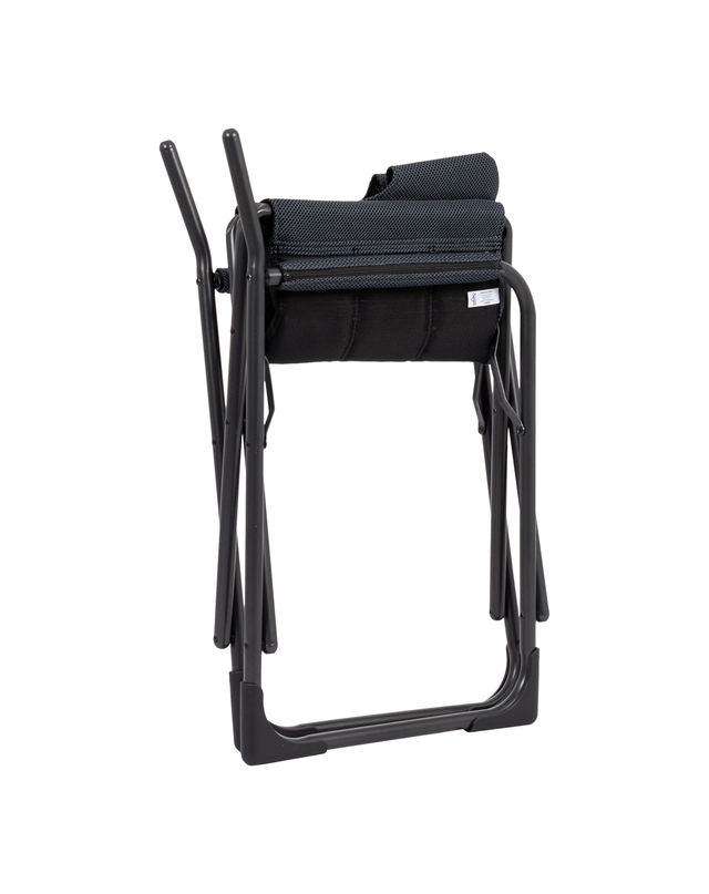 Ein sehr kompakter, bequemer und stabiler Klappstuhl. Ideal für Camping und für unterwegs. Sein Design und die Fußkappen machen den Klappstuhl besonders standfest. Darüber hinaus verfügt der Stuhl über komfortable Armlehnen. Der Klappstuhl ist besonders bequem dank des 3D-Netzgewebe-Bezugs mit Dry Comfort Foam-Polsterung.