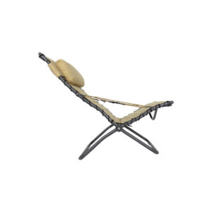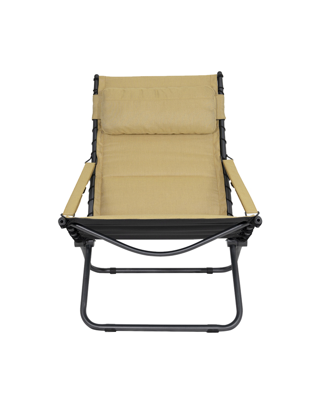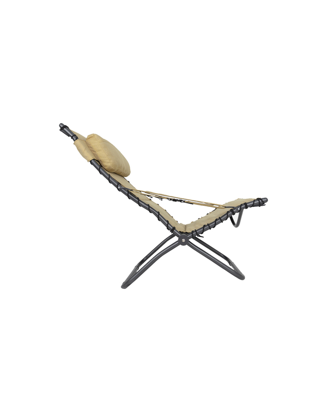 Die verstellbare Sonnenliege mit elastischer Befestigung sorgt für einen optimalen Komfort. Die ergonomische Form sorg zudem für einen maximalen Komfort. Der Liegesessel besteht aus einem sehr pflegeleichten Stoff, der wasserabweisend und extra widerstandsfähig gegen das Ausbleichen durch das Sonnenlicht ist. Außerdem ist er äußerst kompakt und somit für eine einfache Lagerung geeinet. DasTÜV-Qualitätszertifikat zeigt, dass der Liegessessel von hoher Qualität ist. Inklusive abnehmbarem Kissen.