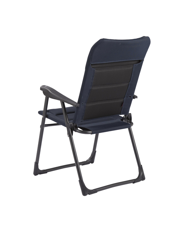 Ein extra stabiler und komfortabler Stuhl. Der Campingstuhl ist durch seinen U-förmigen Rahmen und die Stabilisatoren besonders stabil und zudem mit komfortablen Armlehnen ausgestattet. Der Klappstuhl ist auch für Kinder sicher. Nach Gebrauch kann dieser Stuhl einfach und kompakt eingeklappt werden.