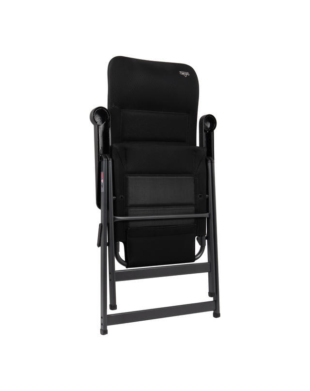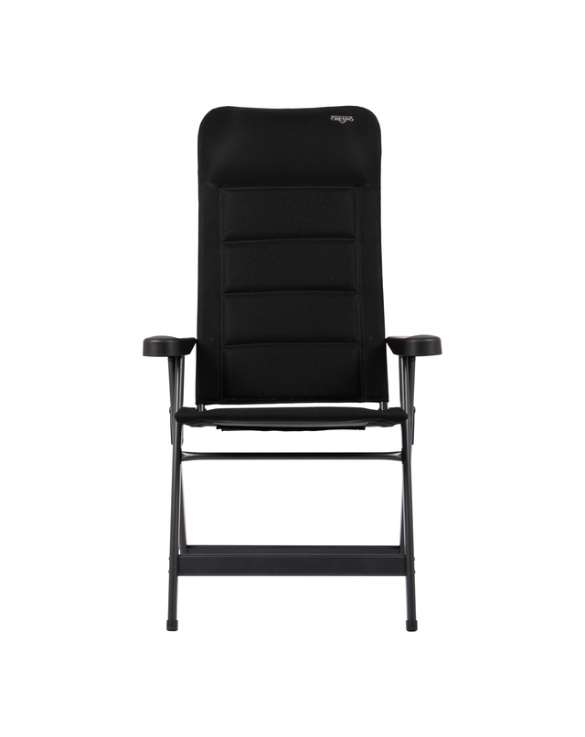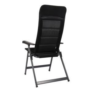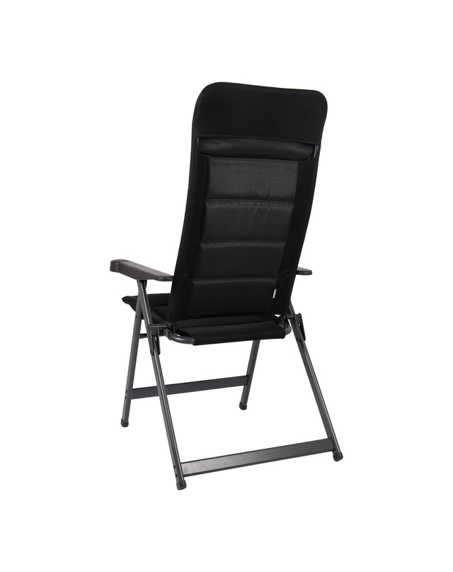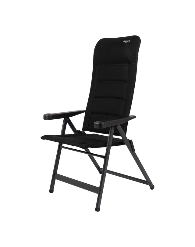 Ein luxuriöser und sehr bequemer Stuhl mit extra langer Rückenlehne. Hervorragend geeignet für größere Personen! Dieser Stuhl bietet dank der in 7 Stufen verstellbaren Rückenlehne maximalen Komfort. Sowohl die Rückenlehne als auch die Armlehnen sind ergonomisch geformt. Der Stuhl ist mit einem eloxierten H-Rahmen ausgestattet, der extra Stabilität und Sicherheit gewährleistet. Der Stuhl ist mit einem gepolsterten 3D-Stoff ausgestattet. Die komfortable Polsterung des Stoffs ist besonders luftdurchlässig und hält, aufgrund der offenen Zellstruktur, keine Feuchtigkeit zurück. Dadurch trocknet dieser Stuhl deutlich schneller als Stühle mit herkömmlicher Schaumstoffpolsterung. Durch sein einzigartiges Design ist dieser Stuhl sehr kompakt und leicht zu transportieren.