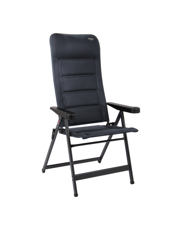 Ein luxuriöser und sehr bequemer Stuhl mit extra langer Rückenlehne. Hervorragend geeignet für größere Personen! Dieser Stuhl bietet dank der in 7 Stufen verstellbaren Rückenlehne maximalen Komfort. Sowohl die Rückenlehne als auch die Armlehnen sind ergonomisch geformt. Der Stuhl ist mit einem eloxierten H-Rahmen ausgestattet, der extra Stabilität und Sicherheit gewährleistet. Der Stuhl ist mit einem gepolsterten 3D-Stoff ausgestattet. Die komfortable Polsterung des Stoffs ist besonders luftdurchlässig und hält, aufgrund der offenen Zellstruktur, keine Feuchtigkeit zurück. Dadurch trocknet dieser Stuhl deutlich schneller als Stühle mit herkömmlicher Schaumstoffpolsterung. Durch sein einzigartiges Design ist dieser Stuhl sehr kompakt und leicht zu transportieren.