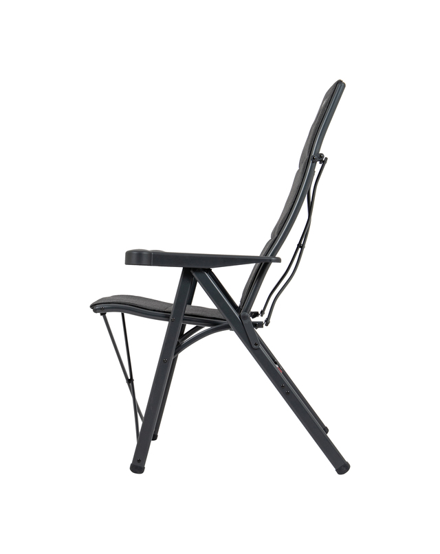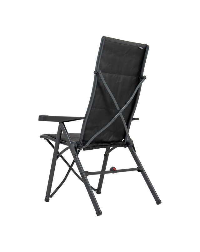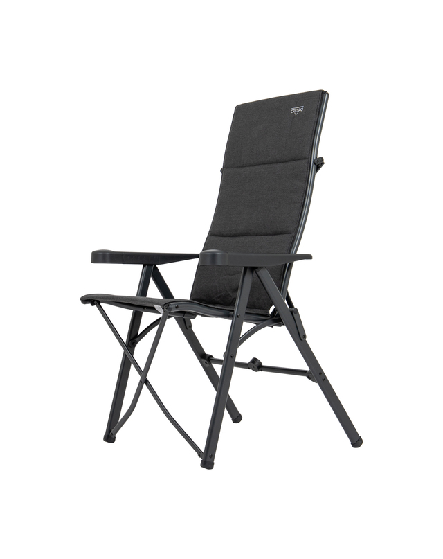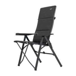 Ein sehr luxuriöser, bequemer und stabiler verstellbarer Klappstuhl. Besonders komfortabel dank der luxuriösen Tex-Comfort Polsterung. Der wasserresistente Stoff ist sehr pflegeleicht und besonders resistent gegen Sonnenverfärbungen. Außerdem ist der Bezug abnehmbar und daher einfach zu waschen. Maximaler Komfort dank der 7-fach verstellbaren Rückenlehne und der stufenlos verstellbaren Kopfstütze. Sowohl die Rückenlehne als auch der Sitz und die Armlehnen sind ergonomisch geformt. Sein Design und die Fußkappen machen den Klappstuhl besonders standfest. Zudem verfügt dieser luxuriöse Klappstuhl über eine Sicherheitsverriegelung für einen außergewöhnlich sicheren und stabilen Stand. Sehr kompakt und einfach zu transportieren. Dieser Stuhl passt perfekt in die mitgelieferte Tragetasche. Hervorragende Qualität. Mit TÜV-Gütesiegel.