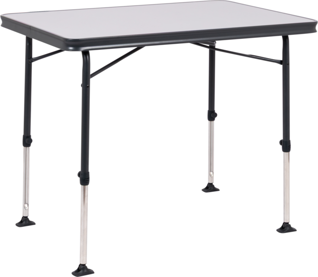 Ein luxuriöser und stilvoller Tisch. Dieser leichtgewichtige Campingtisch ist mit einer hitzebeständigen und wasserfesten Tischplatte versehen und verfügt über eine extra verstärkte Aluminiumkonstruktion. Die Verarbeitung der Füße und der Tischränder gewährleisten eine stilvolle und hochwertige Ausstrahlung. Der Tisch verfügt über stufenlos verstellbare Tischbeine, die eingeklappt werden können. Somit lässt er sich einfach transportieren und kompakt verstauen. Dank der Stabilisierungsfüße steht dieser Tisch auf jedem Untergrund stabil. Der Tisch verfügt über einen einzigartigen Ein- und Ausklappmechanismus, der das Aufstellen und Zusammenklappen sehr einfach macht.