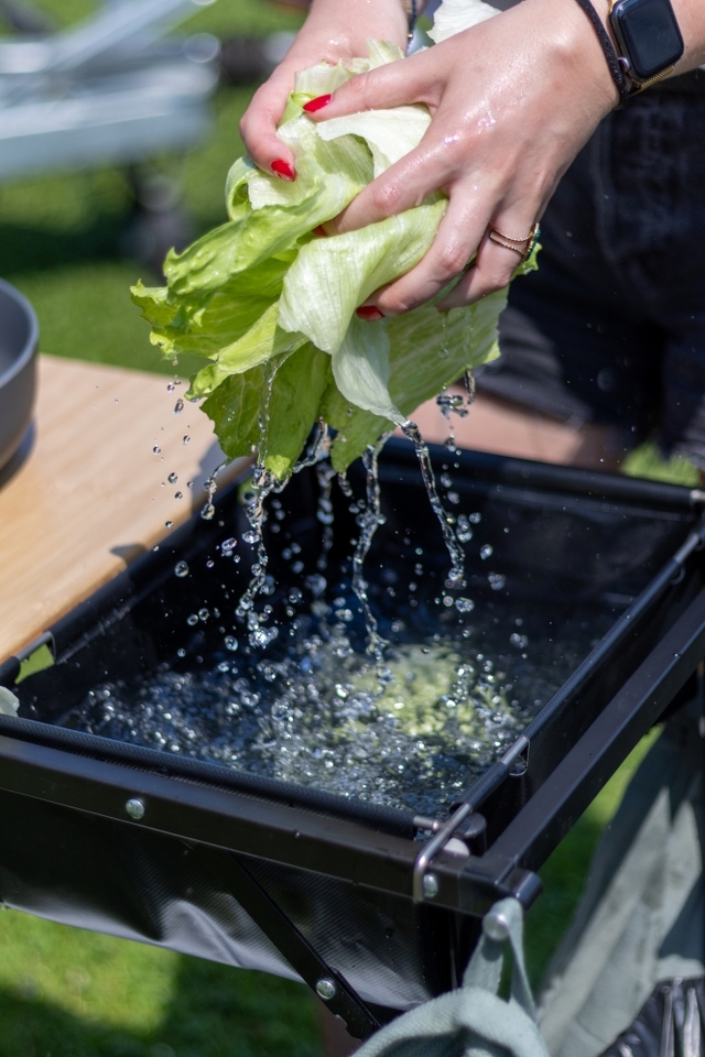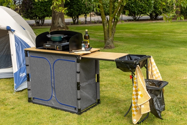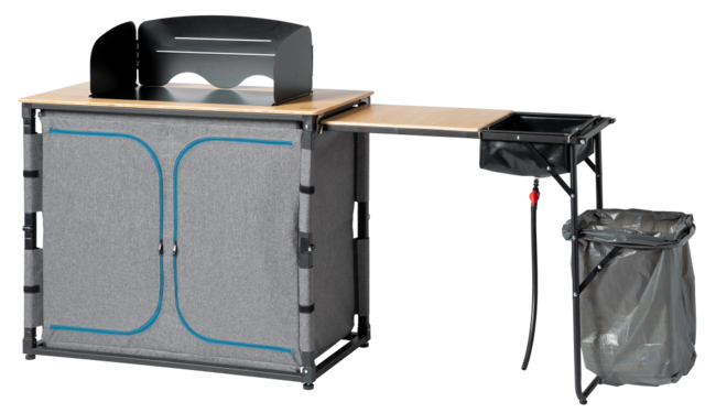 DEFA Campingküche mit Bambusplatte inklusive Waschbecken Farbe schwarz, grau