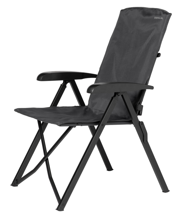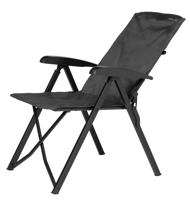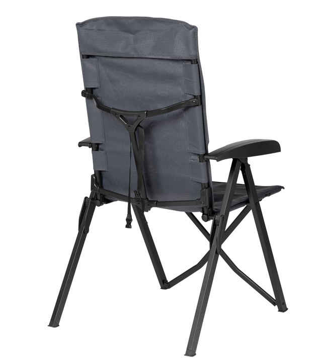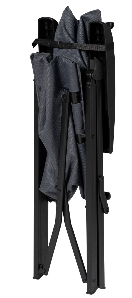 Kompakter und leicht zusammenklappbarer Stuhl. Komfortabel und leicht zugleich. Anthrazit mit schwarzem Gestell.