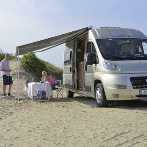 Mit ihrer kompakten Größe und dem geringen Gewicht ist es die ideale Dachmarkise für Kastenwagen, kleinere Wohnmobile und Wohnwagen. Wird mit einer ausziehbaren Handkurbel betätigt. Die Stützbeine werden ordentlich im Ausfallprofil verstaut und lassen sich mühelos durch Öffnen eines Schnappverschlusses herunterklappen. Dank unserer breiten Auswahl an Adaptern lässt sich die Markise nahezu an jeden Fahrzeugtyp anbringen.