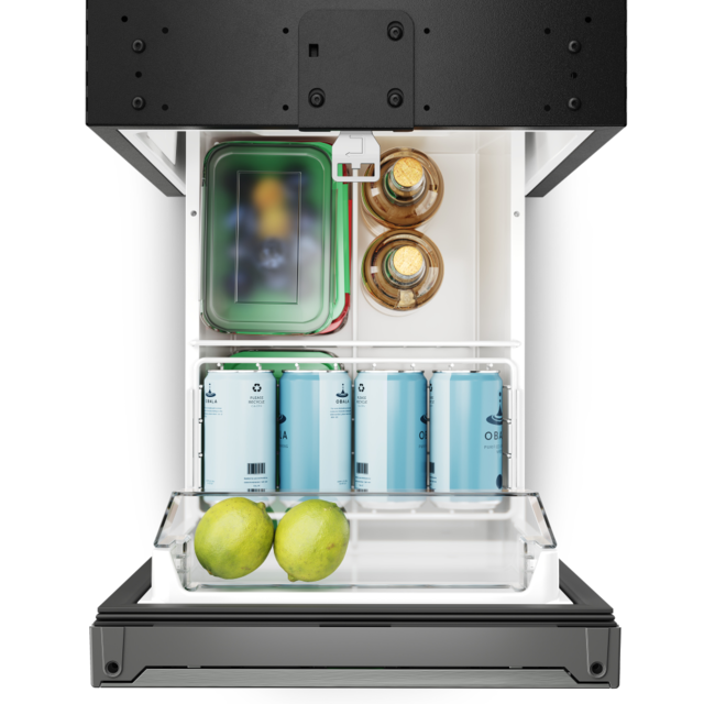 Das elegante Ausziehkühlgerät ermöglicht einen schnellen und einfachen Zugriff auf Ihre Lebensmittel. Dank seiner Vielseitigkeit bietet es flexible Aufbewahrungsmöglichkeiten. Das patentierte Gefrierfach kann problemlos entnommen werden, um zusätzlichen Platz für größere Flaschen und Getränke zu schaffen. Die elektronisch geregelte Kompressor- und Lüftergeschwindigkeit sorgt für einen leisen Betrieb und einen energiesparenden Verbrauch.
