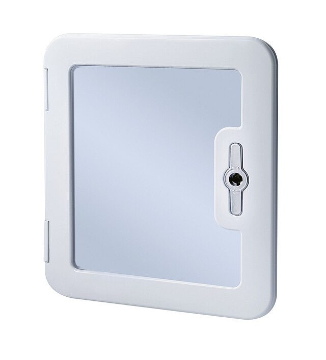 Der Einbau kann waagrecht oder senkrecht erfolgen. Mit Mehrpunktverriegelung und Schließsystem. Integrierte Entlüftung für Dometic Kassettentoilette. Mit Innenliegenden Scharniere. Passender Schließzylinder 9905907.