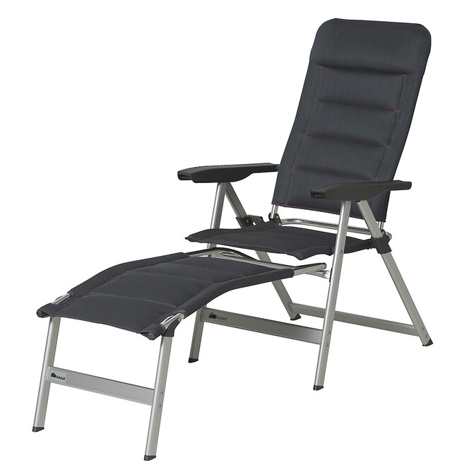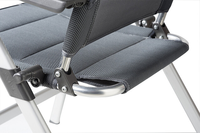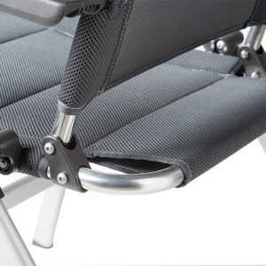 Gepolsterter Stuhl mit einem ultra starken witterungsbeständigen 3D Mesh Gewebe. Die Rückenlehnen ist ergonomisch geformt, mit integrierter Nackenstütze und 10-fach verstellbar. Gestell aus Aluminium, innen verstärktes anodisiertes Ovalrohr. Armlehnen extra breit und aus glasfaserverstärktem Nylon.