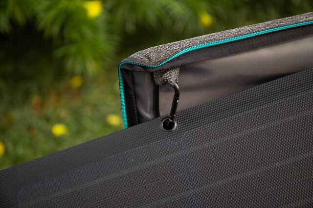 Kickstand Case Bietet Schutz für das Solarpanel während des Transports. Der Koffer dient auch als Ständer, mit dem Sie den Solarstrom in beliebiger Richtung oder Ausrichtung positionieren können, so dass mehrere Solarmodule ohne Hindernisse miteinander verbunden werden können.