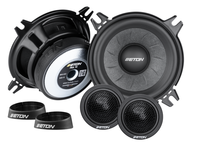 Das ETON 10 cm / 4″“ Komponenten System aus der PRA-Serie überzeugt mit seinem warmen, fülligen Klang, vollen Stimmen und unglaublicher Raumtiefe! Dank der neuen PRA Membran-Technologie lässt sich Spitzensound in der Einstiegsklasse erleben: Die rippenversteifte Papier-Glasfaser Membran ist ein weiterer ETON Meilenstein in der Membranentwicklung. Die Membran ist besonders leicht und zudem besonders steif -Voraussetzungen für einen herausragenden Lautsprecher. Die Rippenversteifung garantiert ein Maximum an Verwindungssteifigkeit. Dies sorgt für eine ultra dynamische, druckvolle Basswiedergabe – extrem präzise und auf den Punkt! Der Komponenten Lautsprecher PRA 10 verfügt über den ETON typischen verwindungssteifen, strömungsoptimierten Metallkorb im Doppelstreben- Design. Ein kräftiger Ferritmagnet mit grosser Polkernbohrung sorgt für den nötigen Antrieb und Dynamik. Dank 3 Ohm Technologie ist der PRA 10 besonders wirkungsgradstark – auch in Kombination mit Werks Head Units ohne zusätzlichen Verstärker. Die Tief-/Mitteltöner wurden speziell entwickelt und abgestimmt, um sie ohne zusätzliche Weichenbauteile zu nutzen, dies erhöht die Effizienz und den Wirkungsgrad. Im Zusammenspiel mit den 25 mm (1″“) Aluminium-Dome Hochtöner entsteht eine perfekte Kombination zur Wiedergabe feinster Details – präzise und raumfüllend. Die langstreckentaugliche Abstimmung mit dem nötigen Spassfaktor macht den PRA 10 zu einem einbaufreundlichen Lautsprecher mit beeindruckendem Preis-Leistungsverhältnis! 10 cm 2-Wege Komponentensystem für den Einbau in vollintegrierte Reisemobile, kräftiger Ferritmagnet, rippenversteifte Papier-Glasfasermembran, warmer, fülliger Klang, präzise und druckvolle Basswiedergabe, 3 Ohm Impedanz für hohen Wirkungsgrad, 80 Watt, Abdeckgitter GR 10 optional erhältlich.
