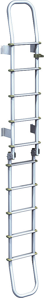Aluminiumleiter mit rutschfesten Sprossen zur Befestigung am Fahrzeugheck.