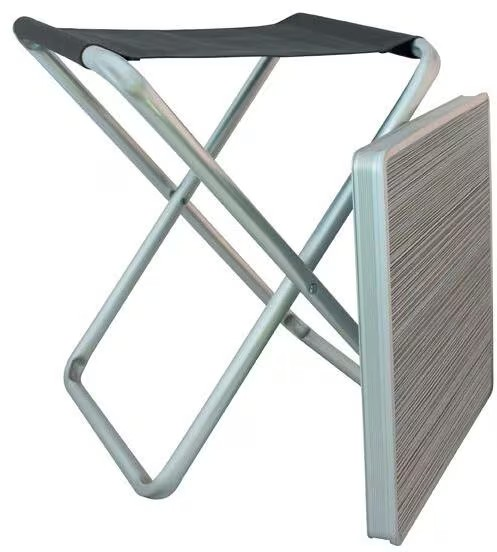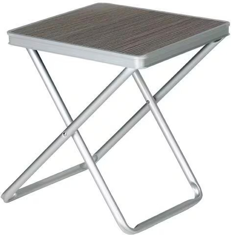Kompakter Klapphocker mit Top-Platte, durch die er auch als Beistelltisch nutzbar ist.