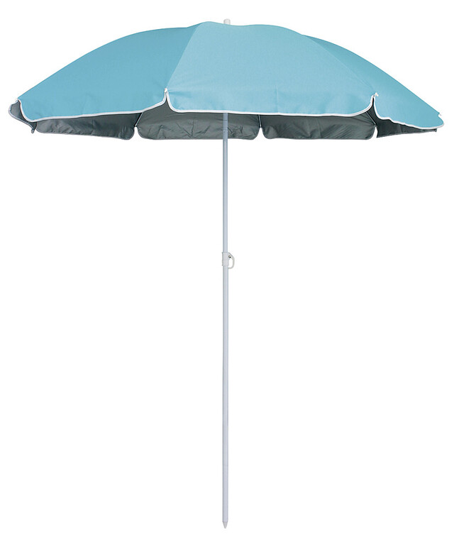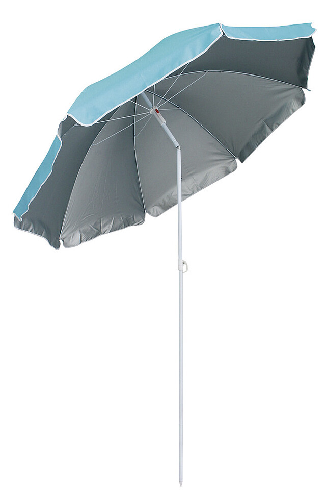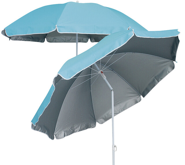 Hochwertiger Sonnenschirm für Garten und Strand. Das Stahlrohr ist mit einem praktischen Knicker versehen.