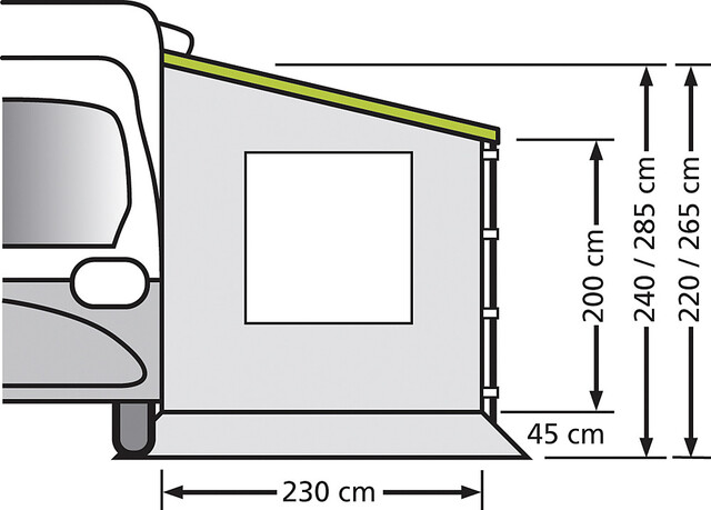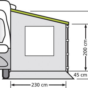 Seitenwand mit Fenster für Reisemobile mit Markise. Für Wohnwagen und niedrige Reisemobile geeignet.