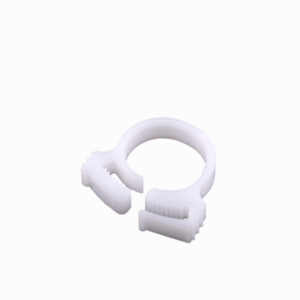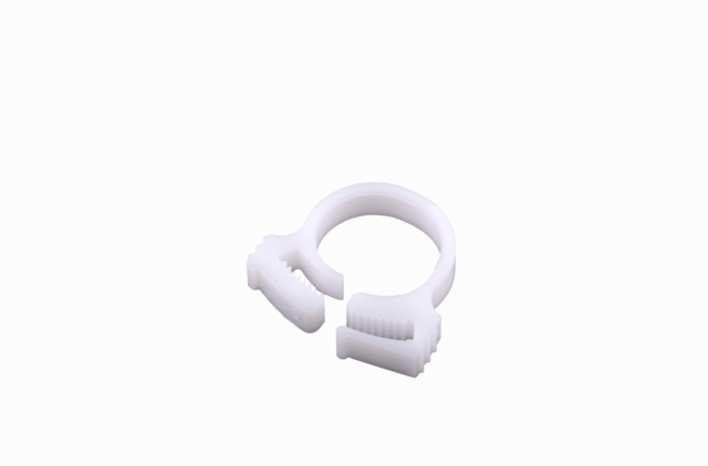 Wieder zu öffnende Schlauchschellen aus Polyacetal natur.