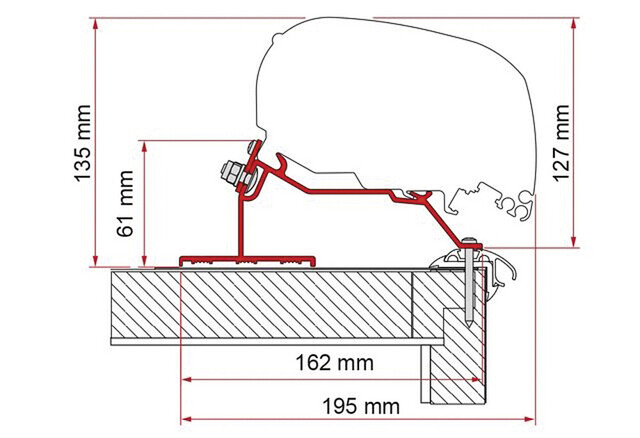 Adapter Fiamma Caravan Roof passend für LMC, Detheffs, Fendt, Trigano 450cm