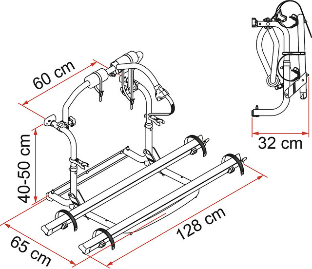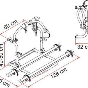 Der kompakte Fahrradträger. Durch die kleineren Montagepunkte ist eine flexible Anbringung möglich. Die solide und leichte Struktur aus eloxiertem Aluminium kann von 40 cm auf 50 cm reguliert werden. Erweiterbar auf 3 Fahrräder.