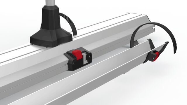 Schiene Plus: Vollständig abnehmbar mit nur einem Klick – schafft Platz im Stauraum, wenn keine Fahrräder transportiert werden.