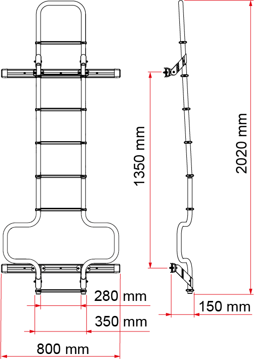 Leiter mit 7 Sprossen. Spezielle Version für Fahrzeuge mit einer Höhe H3.