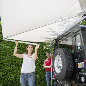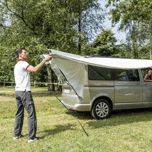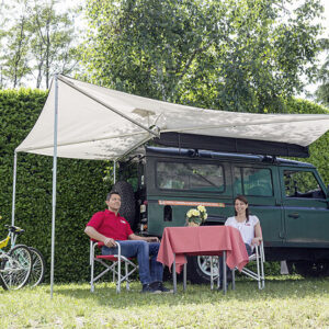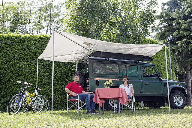 Die leichte und zweckmäßige Sonnenmarkise die sich ganze 270° um das Fahrzeug schmiegt. Eine praktische und einfach zu bedienende Markise für Geländewagen und Campingbusse, ideal für kurze Zwischenstopps. Einfache Montage mit zahlreichen Adaptern, leicht zum abnehmen. Die Markise kann von einer Person alleine geöffnet und geschlossen werden.
