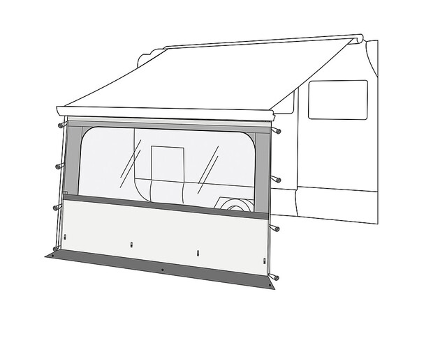 Vorderwand mit Fenster und Bodenschürze. Einfache Montage durch Einziehen in die Kederschiene.