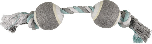 Flamingo Hunde-Spielseil JIM Duo mit 2 Tennisbällen Farbe minze / weiß / grau
