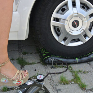 Das Reifenluftkissen zur Vermeidung von Standplatten ist doppelwandig strukturiert. Die inneren Membranen dienen der maximalen Dichtheit. Die äußere Hülle ist für die Langlebigkeit und Formstabilität verantwortlich. Das Reifenluftkissen ermöglicht durch unterschiedlich dimensionierte Kammern eine optimale Anpassung an jede Reifenkontur. Die Auflagefläche wird vergrößert, der Auflagedruck wirksam verringert und gleichmäßig verteilt. Seitliche Kräfte werden wirkungsvoll reduziert und Verspannungen im Fahrzeug kompensiert. Die Camper-Edition besitzt eine speziell für schwere Fahrzeuge (Campervan, Wohnwagen) ausgelegte Innenkonstruktion. Campingmobile können daher problemlos mit untergelegten Reifenkissen betreten und auf dem Campingplatz als Niveauausgleich verwendet werden.