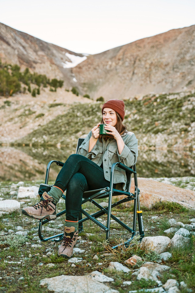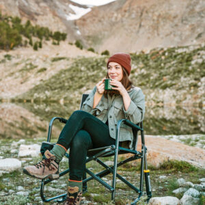 Camping und Outdoor Schaukelstuhl: Stilvoll, cool und bequem schaukeln. Mit unserem Schaukelstuhl für draußen kannst du dich in der Natur entspannt zurücklehnen. Der Freestyle Rocker ist mit der patentierten Spring-Action Rocking Technology™ ausgestattet, die dir ein sanftes Schaukelerlebnis bietet. Egal ob du campen, angeln, grillen oder einfach nur im Garten relaxen willst, der Freestyle Rocker ist dein perfekter Begleiter. Er hat einen praktischen Tragegriff und lässt sich mit der patentierten Eazy-Fold™ Technologie sicher und einfach auf- und zuklappen.