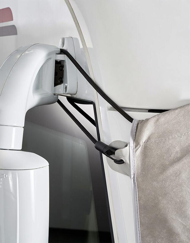 Ist leicht zu befestigen und wird einfach in die Türkanten eingehängt und abgespannt. Aus 3-lagigem Non-woven-Material. Zum Lieferumfang gehören Gummispanner (kein Schrauben oder Bohren).