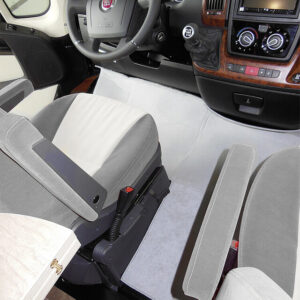 Hindermann Fussraumisolierung ohne Wannenform mit Abdeckung zwischen den Sitzen, mit Getränkehalterausparung. Eine wirkungsvolle Ergänzung zum Thermovorhang. Genau wie dieser, isolieren diese Trennmatten gegen Kälteeinstrahlung und Wärmeverlust im Fußraum.