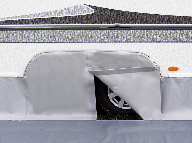 Passform Radkastenabdeckung aus winterfestem Planenmaterial (ca. 430 g/m²).