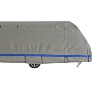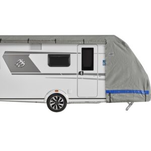 Für Reisemobile gibt es alleine 3 Grundformen die den unterschiedlichen Konturen, Aufbaubreiten und Aufbauhöhen von Integrierten, Kompaktintegrierten, Teilintegrierten sowie Alkovenfahrzeugen gerecht werden. Jede Schutzhülle verfügt über 4 Reißverschlüsse die (geöffnet) das Überziehen sowie Abnehmen erleichtern und einen Zugang zur Eingangstür bzw. Staukästen auf der linken Fahrzeugseite ermöglichen. Alle Schutzhüllen verfügen beidseitig über eine Ösenleiste sowie Spannlaschen an Front und Heckseite.
